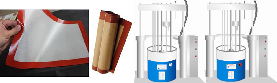 この液体のシリコーンゴム (LSR) はベーキングマットを作るために特別設計された、プラチナ触媒を用いた二成分のシリコーン素材です。その 2 つの成分の混合比は、100:2 (B:A)です。硬化後、食品グレードシリコーンゴムは優れた絶縁性能、耐熱性、弾力性をもちます。それは絶縁体、熱抵抗、湿気及び防水目的の製品に幅広く適用されます。たとえば、LSR 材料はグラスファイバー布(グラスファイバー・チューブ)のディップコーティングなどベーキング マットを作るために最適です。