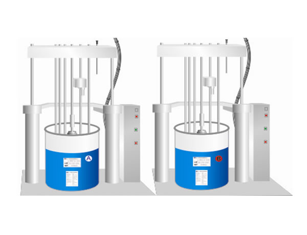 A と B の 2 つの割合を1:1 の混合比にしてスタティック ミキサーを使用します。混合物を射出成形機に直接注入します。金型は 160℃ から200℃ にする必要があります。AB 混合物は、数分で、ゴムのような形に加硫します。